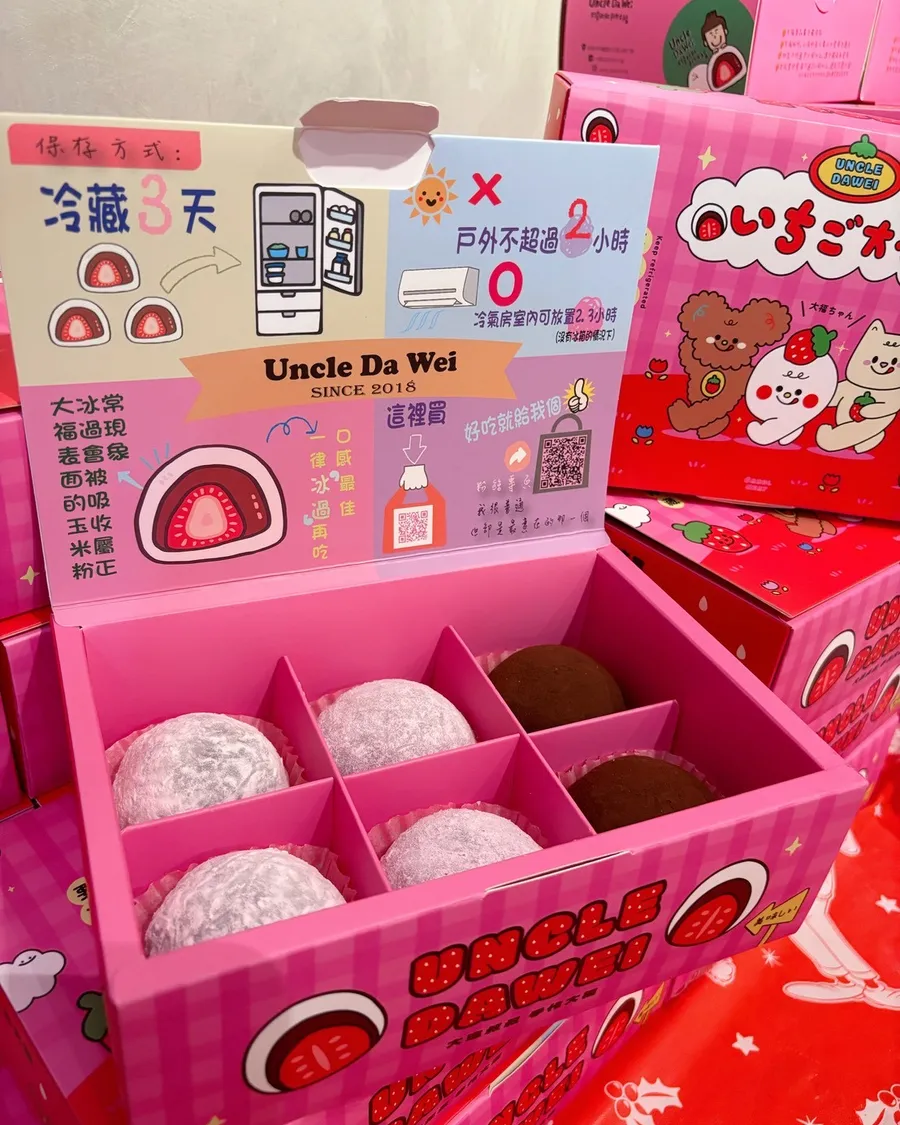 大瑋叔叔獨特的大福外皮口感入口即化,飽滿的內餡搭配新鮮的台灣草莓